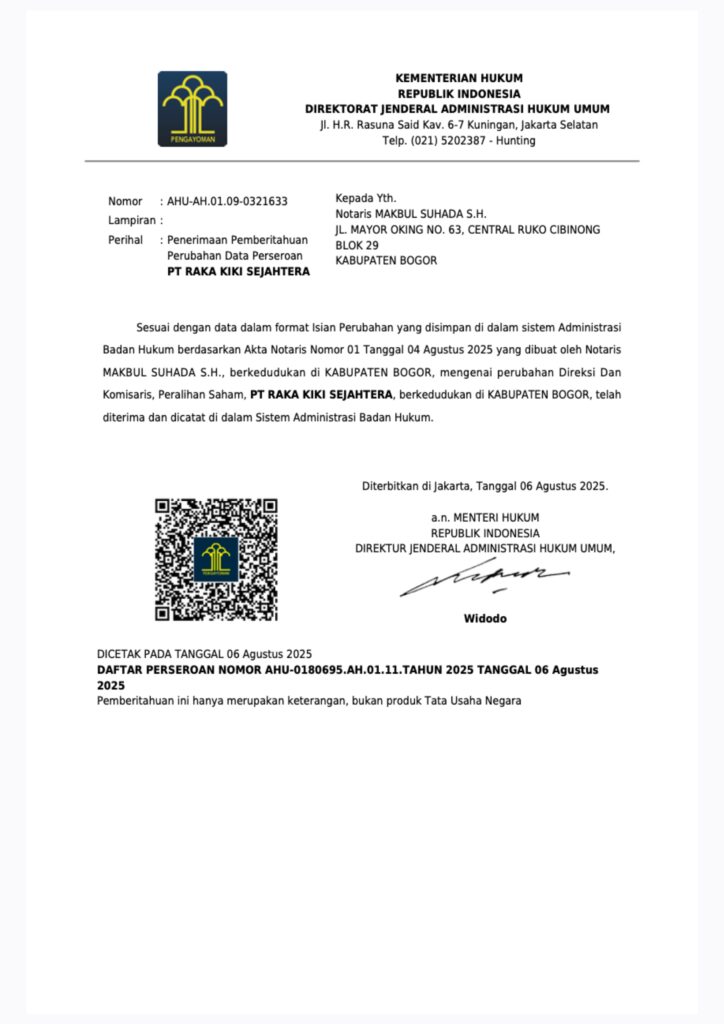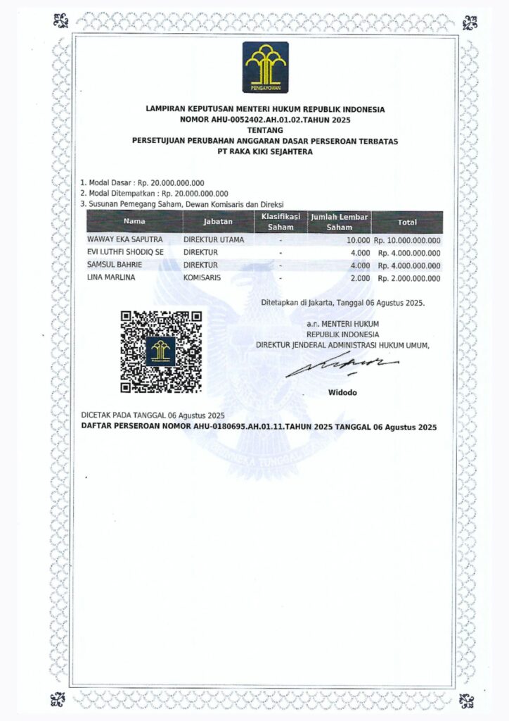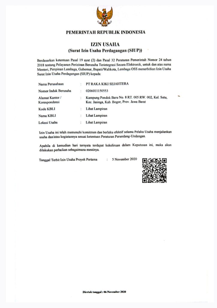 PT Rakaki Sejahtera Indonesia telah resmi berbadan hukum dan memegang izin usaha lengkap. Kami hadir untuk memberikan layanan terpercaya dan amanah untuk setiap klien."