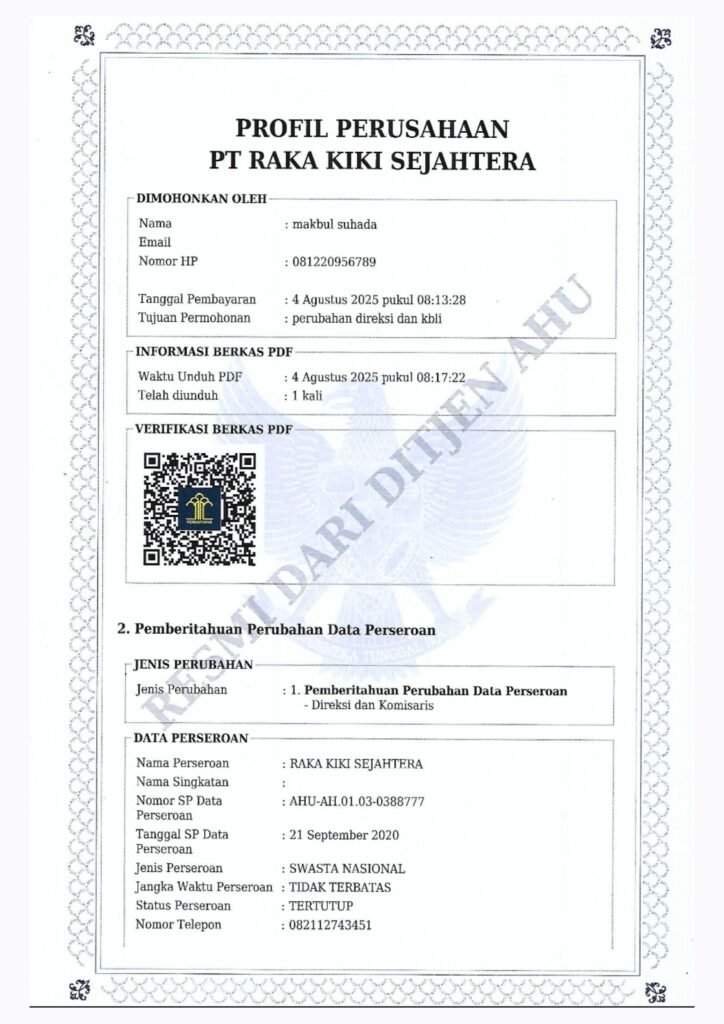 Apakah PT Rakaki Sejahtera Indonesia benar-benar berbadan hukum?